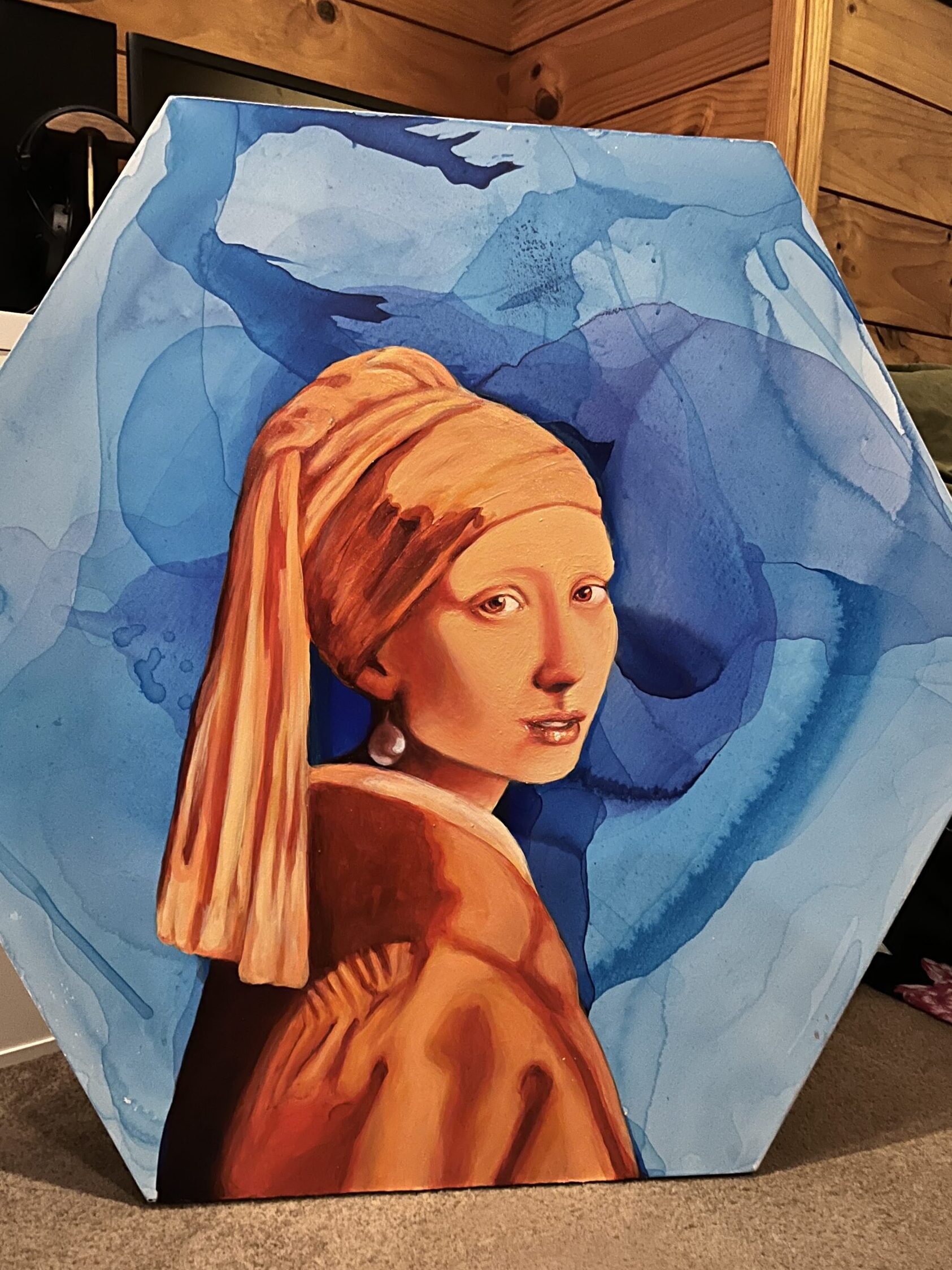 Another wonderful adventure in my Iconic Series, where I interpret truly iconic pieces of art. I enjoyed reading up on the paintings…in some instances new technology had changed what we know about them, and I’m literally CATCHING UP on the news since last time I studied art history! In the case of Vermeer’s painting…in 2014 we started talking about the fact that it’s not even a pearl earring she’s got! Sources: wikipedia and art news