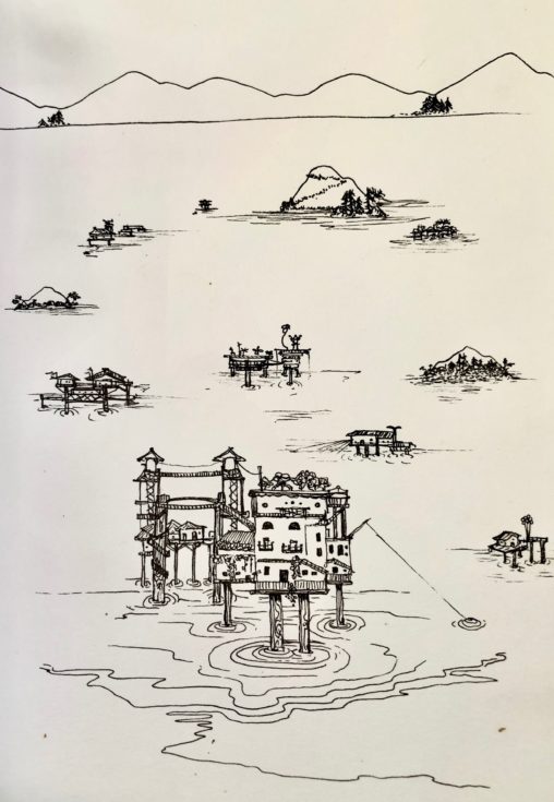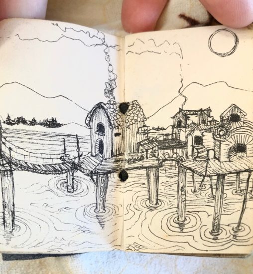 So I make these tiny villages…it started when I was quite young and became fascinated with first blueprint sketches and then drawing the outsides of houses, and the…